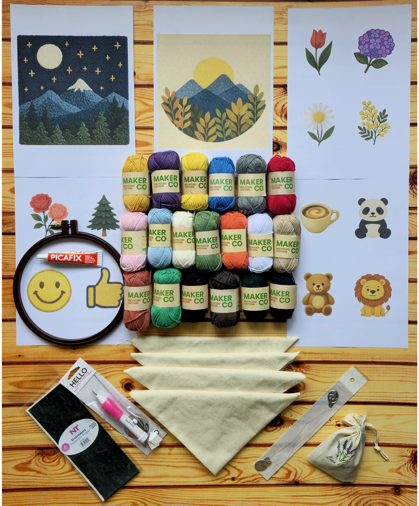 Set, ihtiyacınız olan tüm temel malzemeleri bir arada sunarak hızlıca başlamanızı sağlar. İçerisindeki renkli iplikler, desen şablonları ve özel punch iğnesi ile hayal gücünüzü gerçeğe dönüştürebilirsiniz.